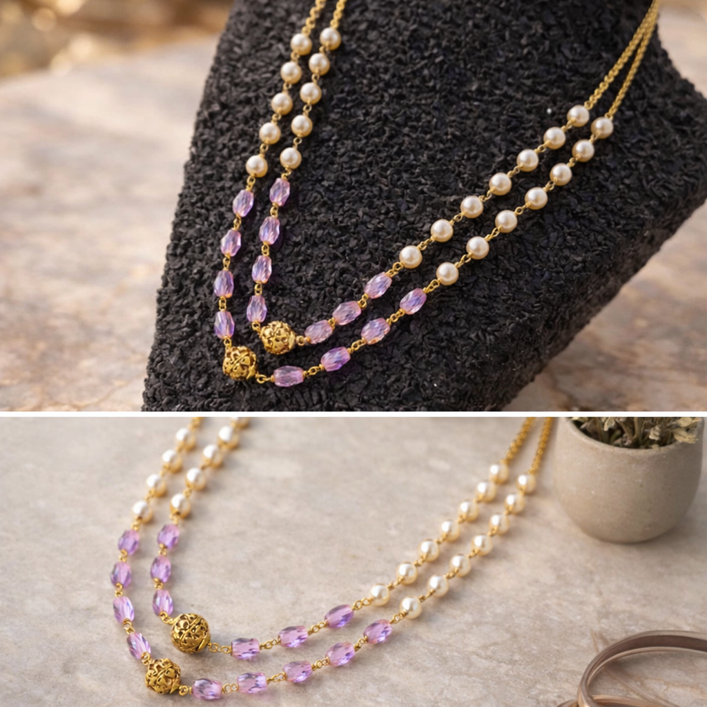 Ideal for weddings, festive celebrations, engagement ceremonies, and cultural events, this necklace pairs beautifully with sarees, lehengas, anarkalis, and even elegant Indo-western outfits. It also works as a refined choice for daytime functions where heavy bridal jewelry may feel excessive. The lightweight construction and smooth bead finishing ensure comfortable wear for extended hours, making it suitable for both grand occasions and intimate gatherings.